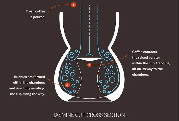 The JASMINE CUP is a unique coffee cup that is designed to enhance the flavor of the brew. Its patented design features an auto-aeration mechanism that uses physics to lock in flavors and aromas, resulting in a cup of coffee that is bursting with flavor. The cup is precision crafted, ensuring that it meets the highest standards in experiencing coffee. Whether you are a coffee connoisseur with a refined palate or just simply love enjoying specialty brews, the JASMINE CUP is sure to delight your senses and elevate your coffee-drinking experience, which is exactly what we set out to achieve.